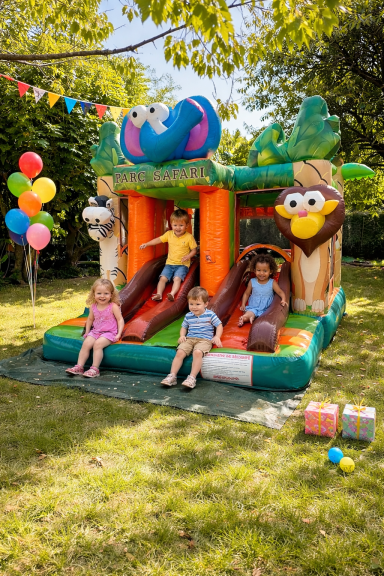 Découvrez notre gamme de structures gonflables modèle safari, idéales pour divertir les enfants lors d'événements publics ou privés. Que ce soit pour une fête d'anniversaire, une kermesse ou un rassemblement familial, nos structures offrent une expérience ludique et sécurisée, tant pour les filles que pour les garçons. Pratiques et faciles à installer, elles garantissent des heures de plaisir tout en respectant les normes de sécurité. Faites de votre événement un moment inoubliable grâce à nos structures gonflables, qui éveilleront l'imagination des plus jeunes tout en leur permettant de se dépenser en toute sécurité.
