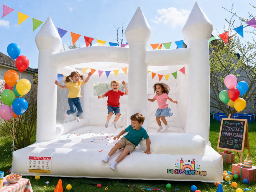 Pour vos événements, la location de châteaux gonflables de couleur blanche est une option idéale pour divertir les enfants tout en ajoutant une touche d'élégance. Ces attractions ludiques s'adaptent à tous types d'événements, que ce soit un anniversaire, mariage, baby shower etc ... Nos châteaux gonflables blancs se marient parfaitement avec n'importe quel thème, offrant une ambiance festive tout en restant chic. Offrez aux enfants une expérience inoubliable avec notre gamme de châteaux gonflables, conçus pour garantir leur sécurité et leur bonheur.